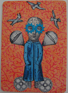 I did sneak in a bit of other playtime by doing mail art. I have a bit of a wacky sense of humor, and I tend to express it in my art journals and mail art. This was one of my favorite juxtapositions: